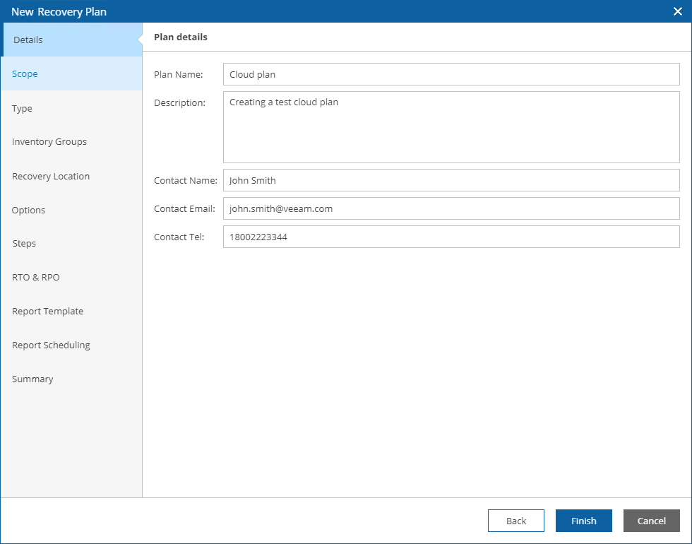 You can also provide a contact name, email and telephone number of a person responsible for the plan.
