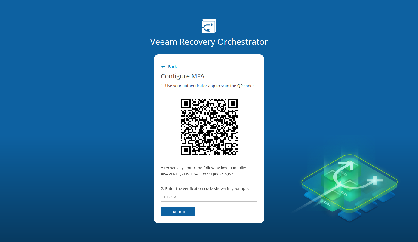 Veeam Recovery Orchestrator supports multi-factor authentication (MFA) for additional user verification, which allows Administrators to enable, disable and reset MFA for all users and user groups working with the Orchestrator UI. MFA in Veeam Recovery Orchestrator is based on the Time-based One-Time Password (TOTP) method that requires the user to verify their identity by providing a temporary six-digit code generated by an authentication application running on a trusted device.