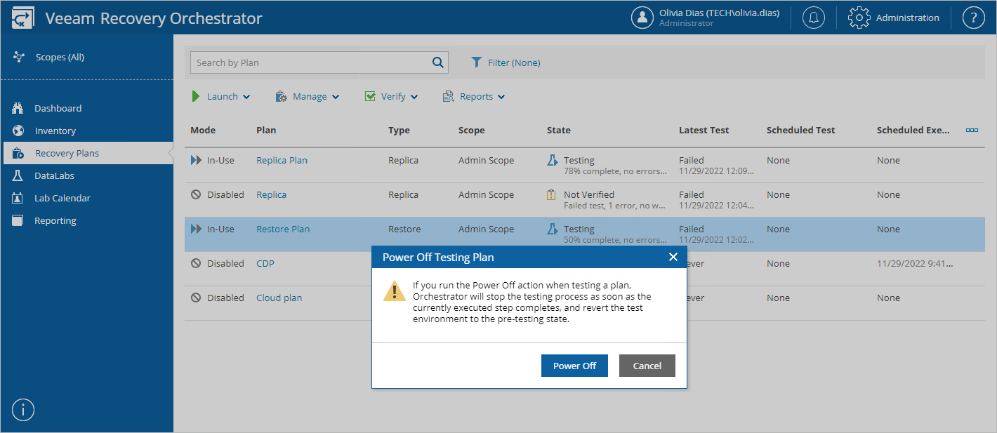 - In the Power Off Testing Plan window, click Power Off to confirm the action.