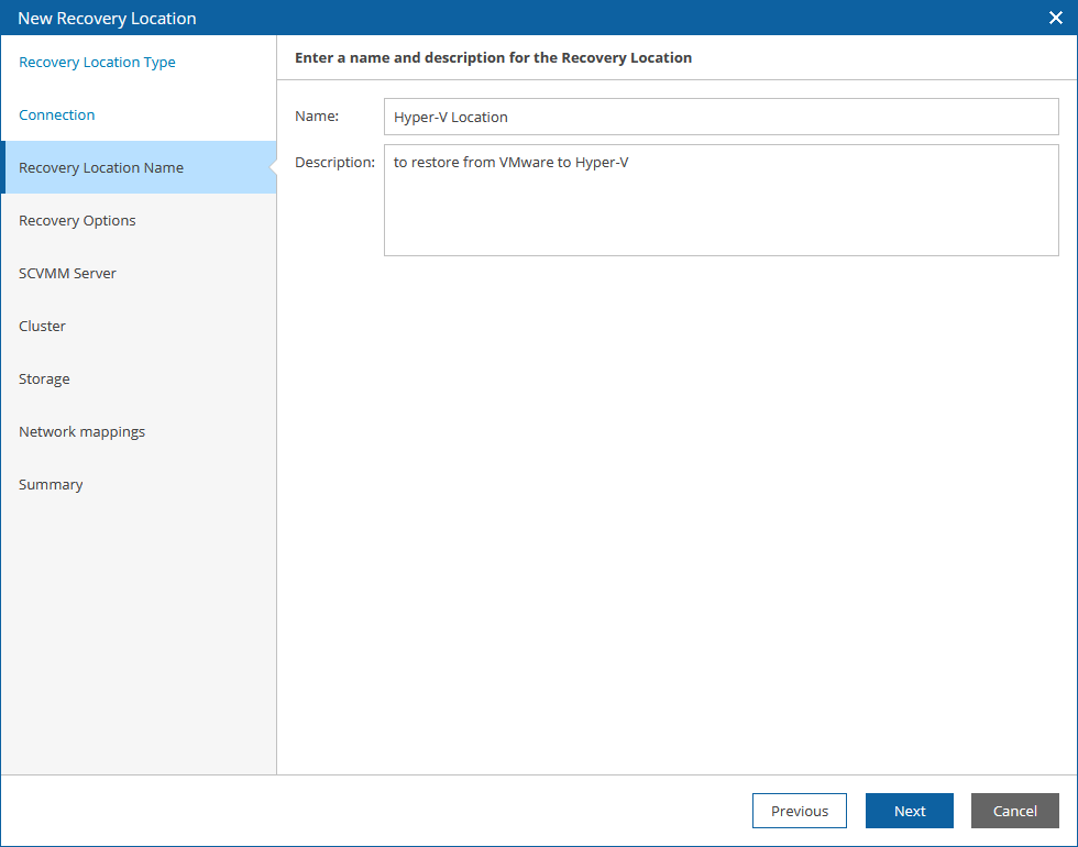 Step 3. Specify Recovery Location Name and Description