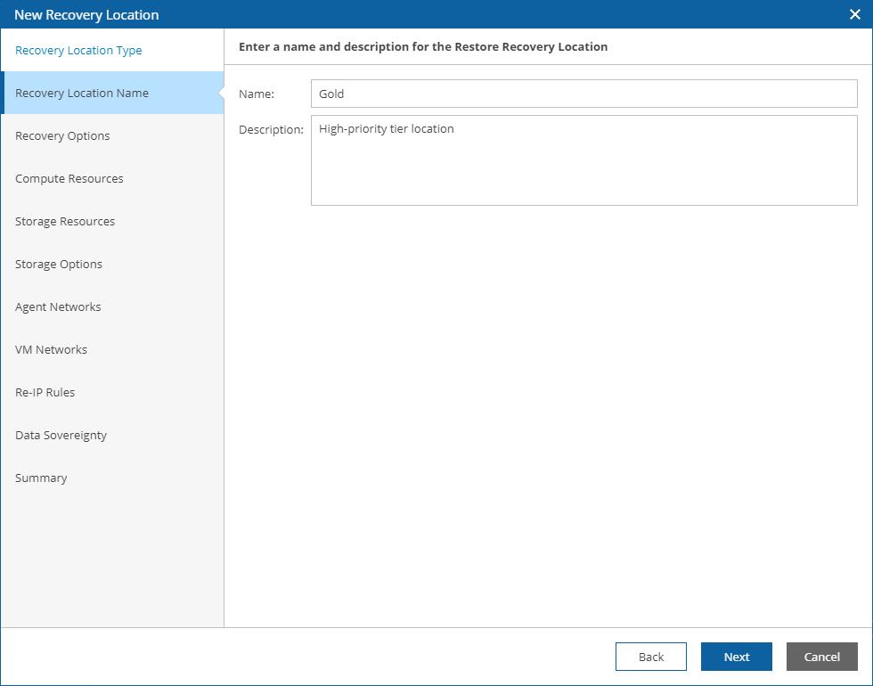 Step 2. Specify Recovery Location Name and Description