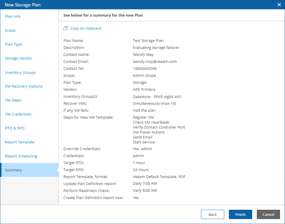 At the Summary step of the wizard, review configuration information and click Finish.