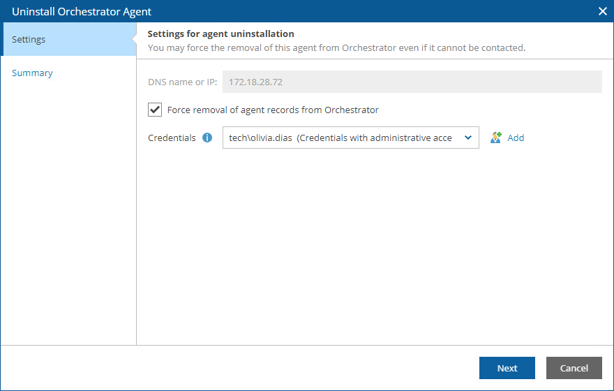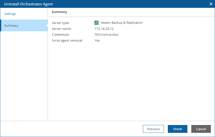 - Choose whether you want to uninstall the Orchestrator agent regardless of the Veeam Backup & Replication server state.