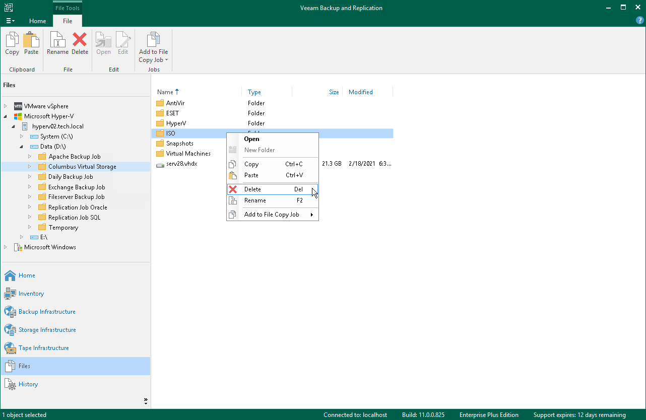 You can create, rename and delete folders in the Files view of Veeam Backup & Replication.