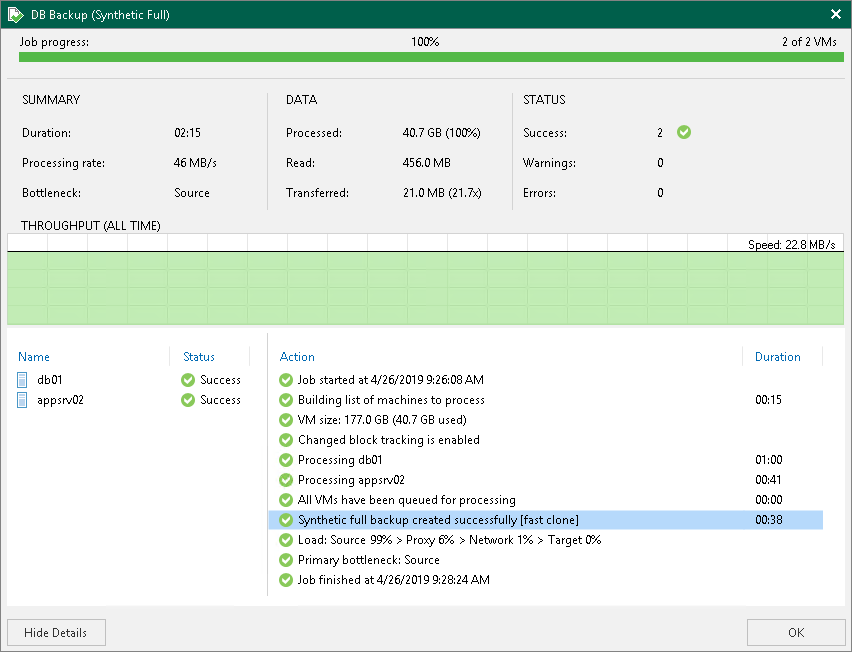 When Veeam Backup & Replication performs an operation with Fast Clone, it reports this information to the session details of this operation.