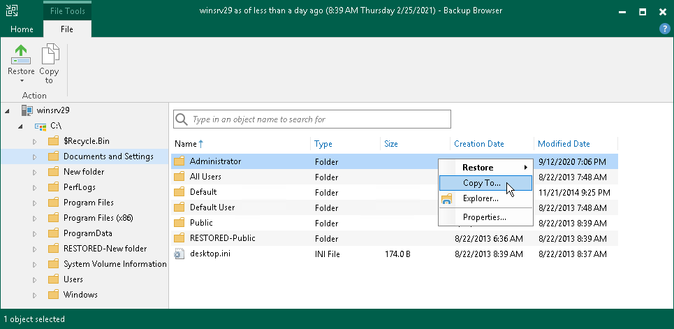 - 右键单击文件系统树或右侧详细信息窗格中的所需文件或文件夹,然后选择Copy To (复制到)。