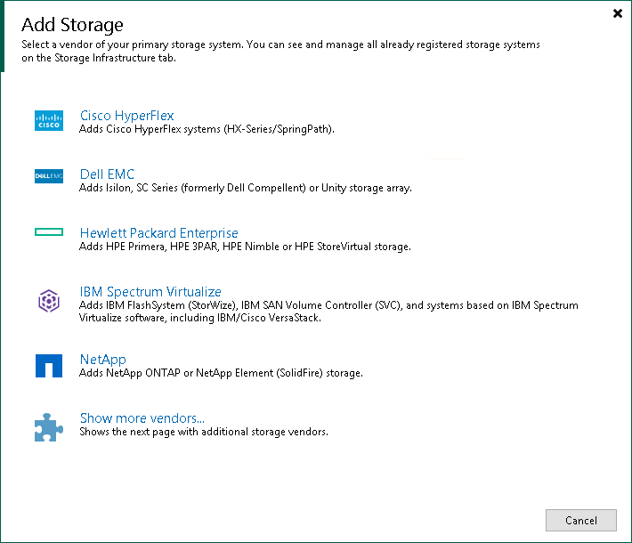 - You can use this method if at least one HPE Nimble, 3PAR StoreServ or StoreVirtual/LeftHand/P4000 series storage system is added to the backup infrastructure.