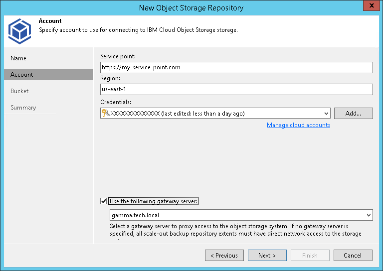 - In the Service point field, specify a service point address of your IBM cloud object storage.