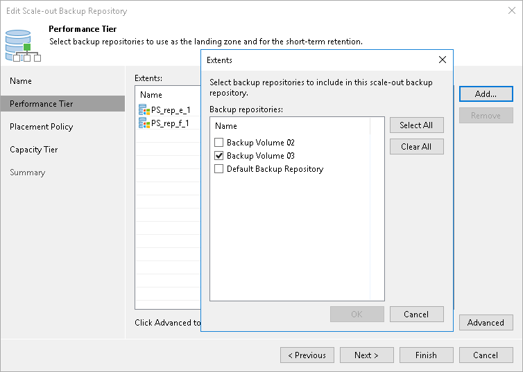 - Pass through the next wizard steps and finish working with the wizard. The new performance extent will be added to the scale-out backup repository.