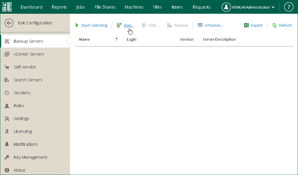 要通过单个Web控制台管理备份服务器,必须将它们添加到Veeam Backup Enterprise Manager中。