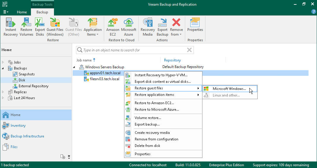 从Veeam Agent备份进行文件级还原的程序类似于用于虚拟机备份的程序。区别仅在于选择 File Level Restore(文件级还原)向导中的 Veeam Agent 备份,而非虚拟机备份。如需了解更多信息,请参见还原虚拟机文件。