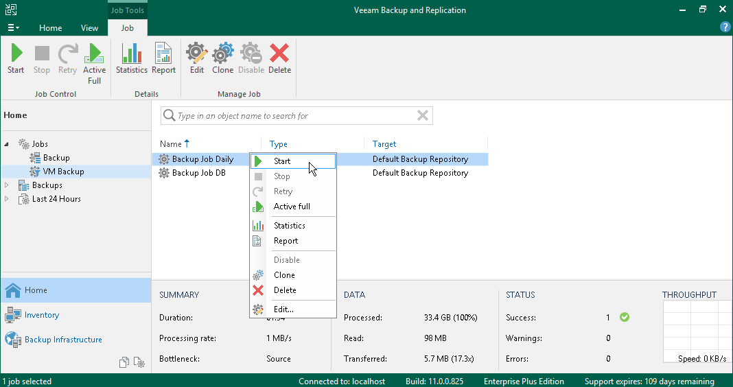如果未安排备份作业,则必须手动启动。要开始作业,请执行以下操作: