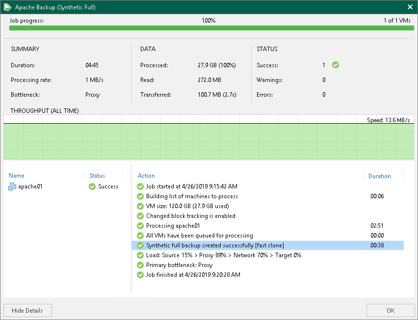 - In backup jobs: merge of backup files, creation of synthetic full backups (including GFS backups), transformation of reverse incremental backups and compact of full backup files.