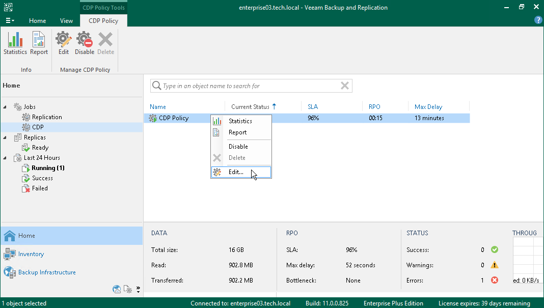 - In the inventory pane, navigate to the Jobs > CDP node.