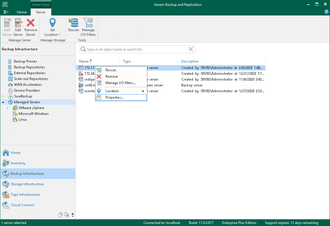 - Open the Backup Infrastructure view.