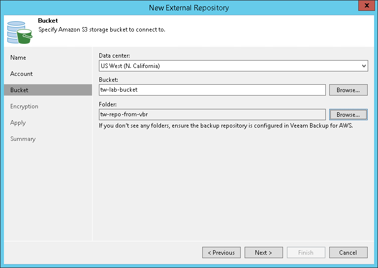 If you do not see the required folder, make sure that the repository you are trying to add is created on the Veeam Backup for AWS server.