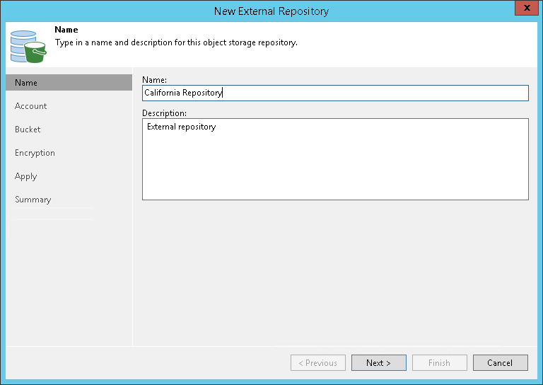 第2步。指定外部存储库名称 在本页面 At the Name step of the wizard, specify a name and description for the external repository.