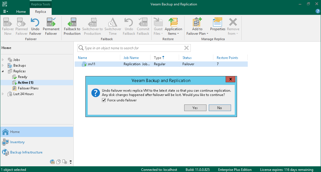 - In the working area, select the necessary replica and click Undo Failover on the ribbon. As an alternative. right-click one of the selected replicas and click Undo failover.