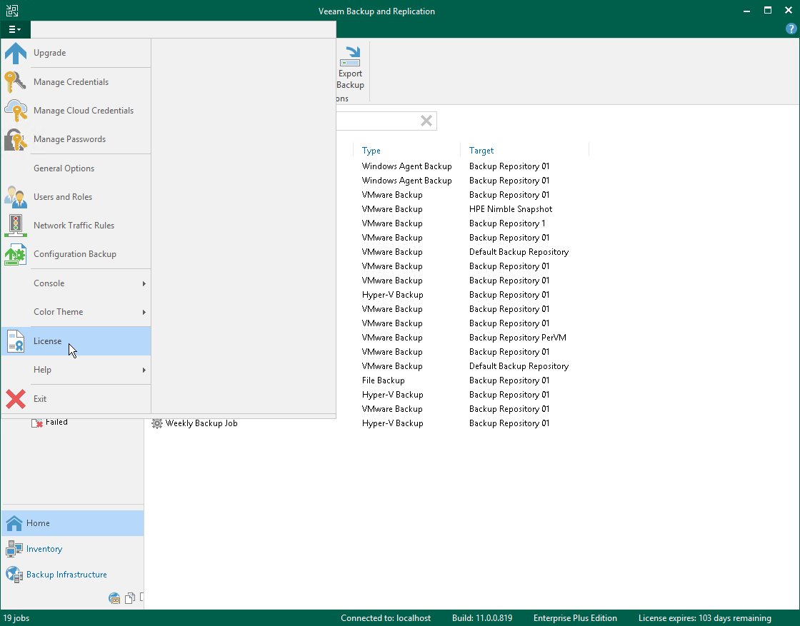 You can remove the installed license. When you remove a license, Veeam Backup & Replication will switch to the Veeam Backup & Replication Community Edition. For more information, see Veeam Backup & Replication Community Edition.