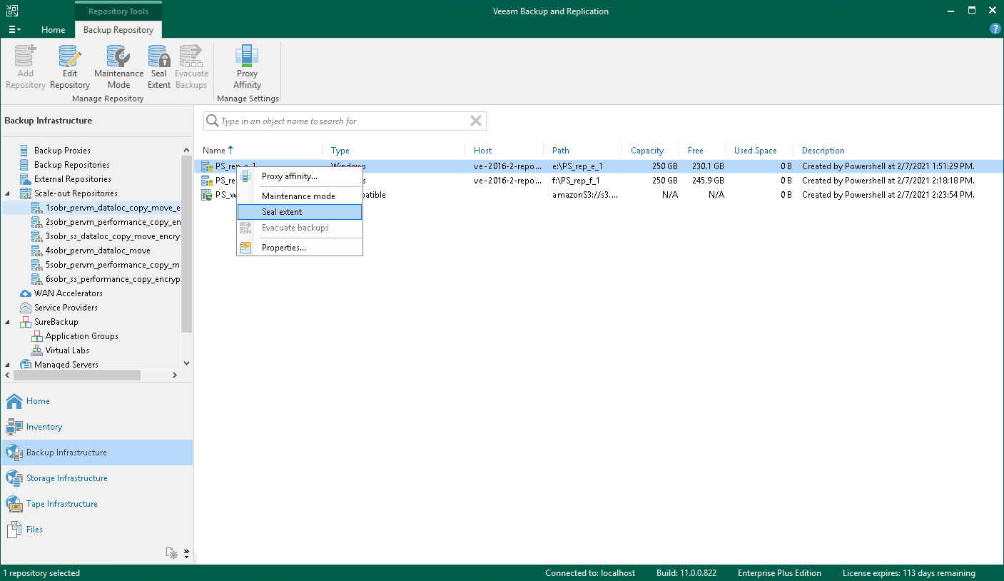 Veeam Backup & Replication allows you to put any of the performance extents of your scale-out backup repository into the Seal mode.