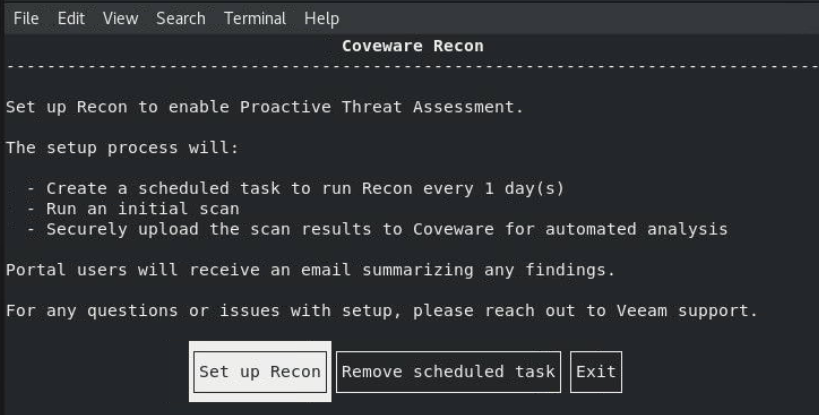 For more information on how to integrate Recon Scanner into Veeam ONE, see the Coveware Integration section in the Veeam ONE User Guide.