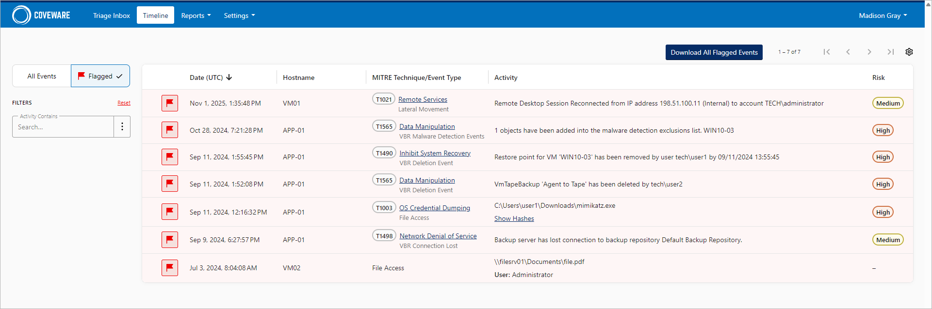 - Risk-Based Filtering: Prioritize your response by filtering events according to their risk level.