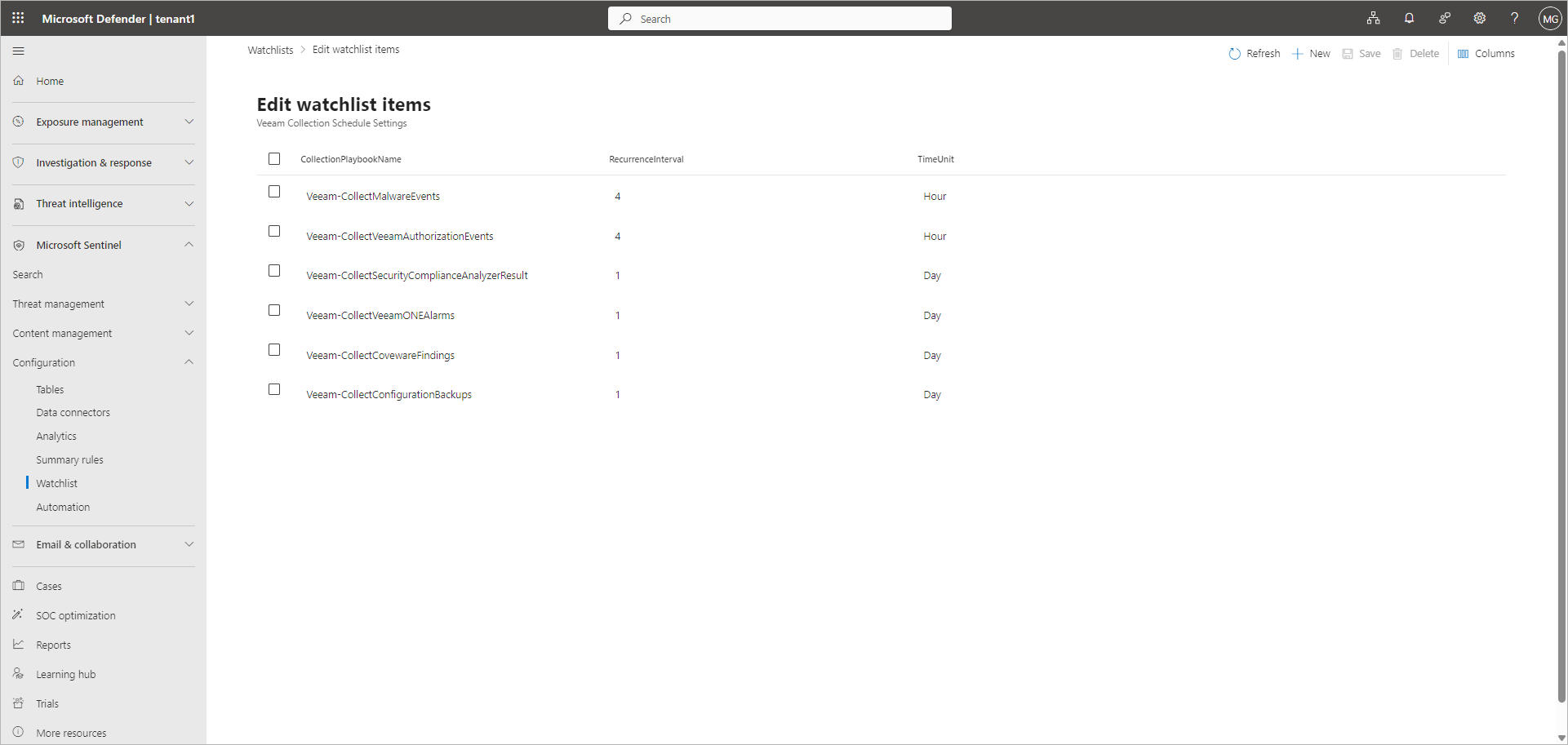 - On the Watchlist tab, select the Veeam Collection Schedule Settings watchlist.