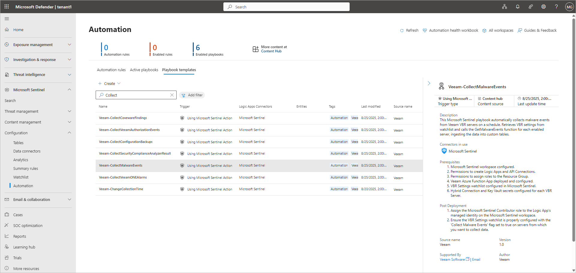 Veeam App for Microsoft Sentinel includes the following playbooks to manage Veeam data collection through Veeam REST APIs: