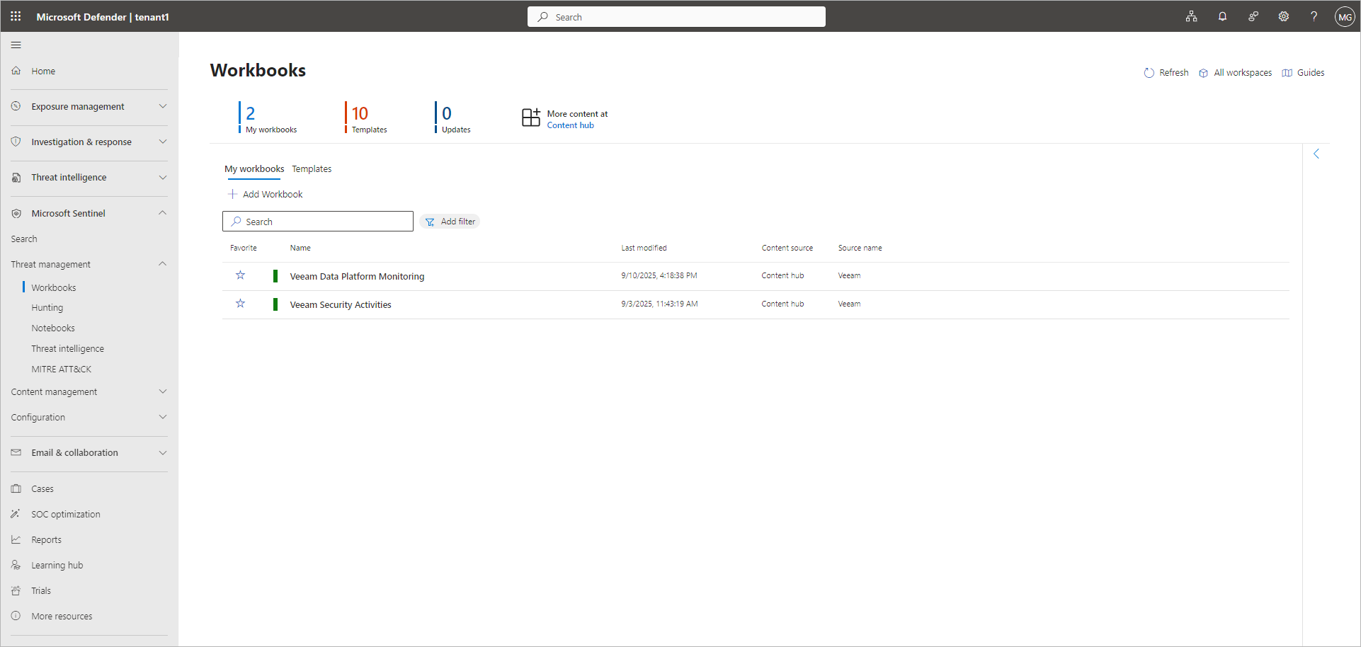 - If you use Microsoft Sentinel in the Microsoft Defender portal, click the Microsoft Sentinel > Threat Management > Workbooks section in the portal menu.