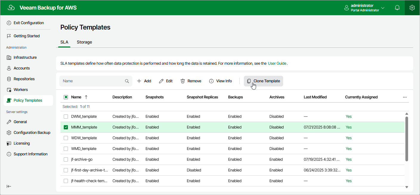 Veeam Backup for AWS allows you to create a new policy template based on the settings of an existing one: