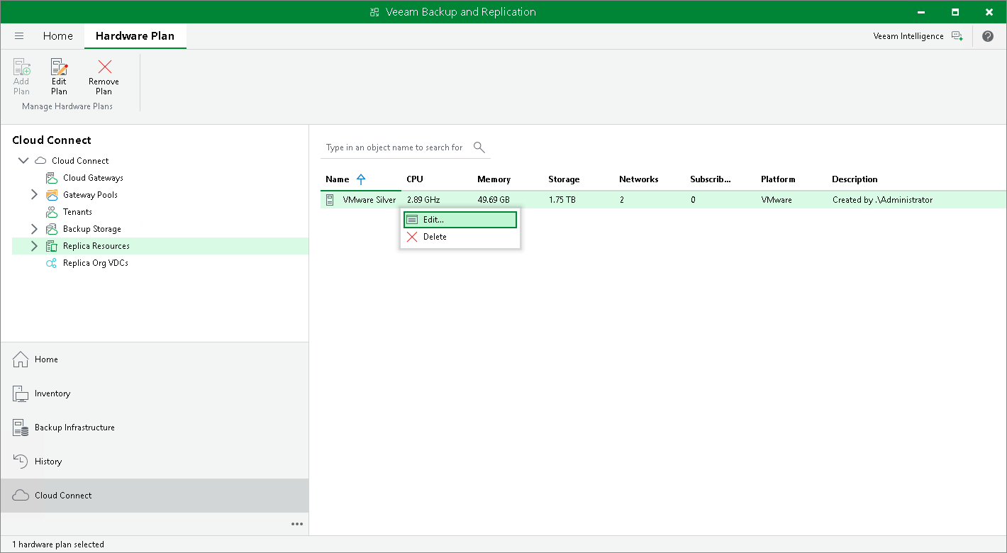- Select the necessary hardware plan in the inventory pane and click Edit Plan on the ribbon or right-click the necessary hardware plan and select Edit.