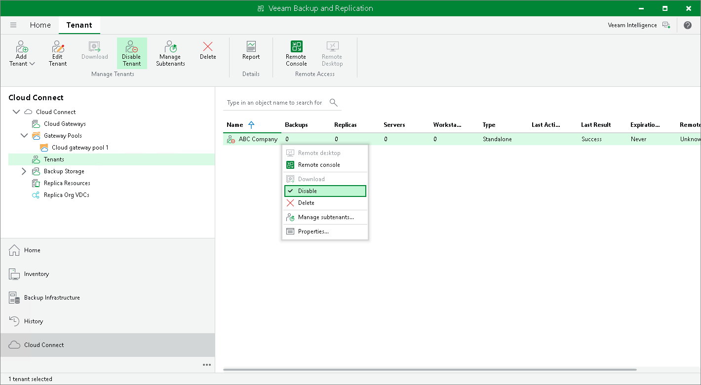 - In the tenant Veeam Backup & Replication console, open the Backup Infrastructure view.