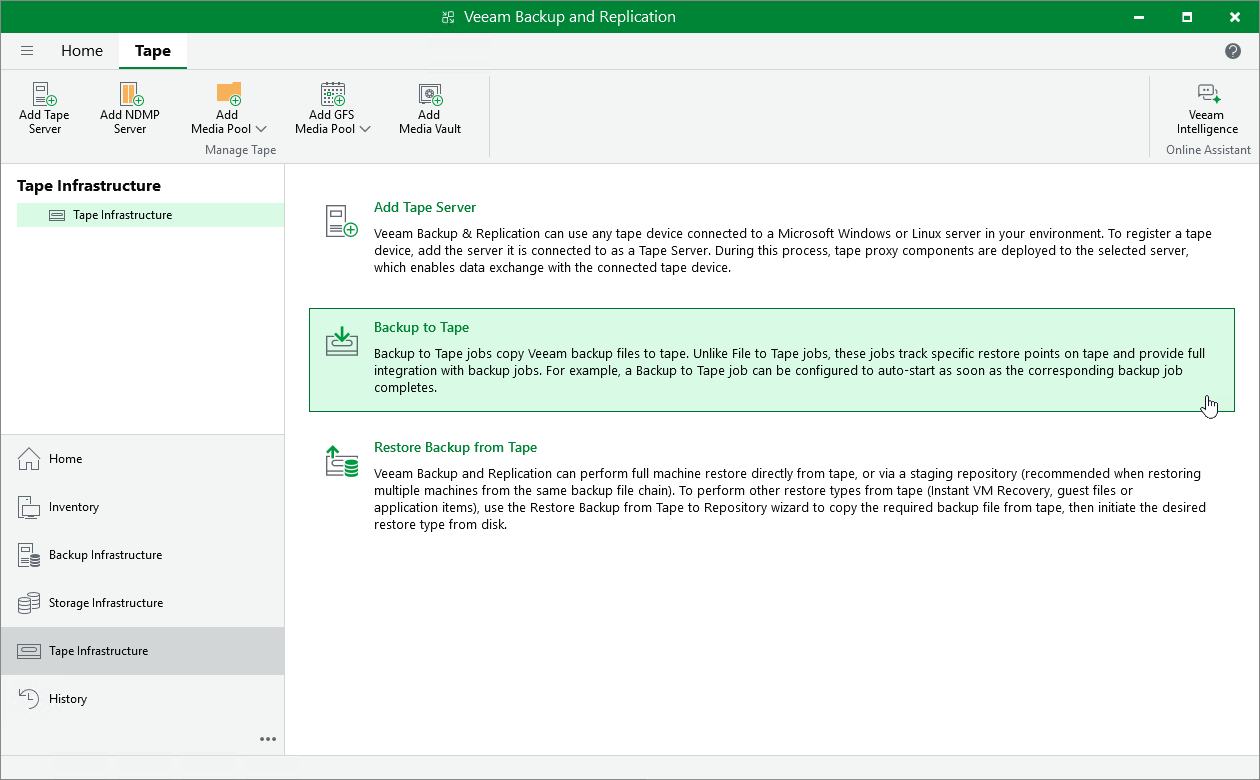 - Create a backup to tape job as described in section Creating Backup to Tape Jobs.