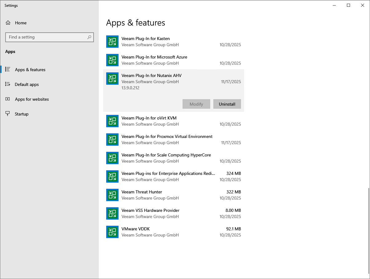 - In the program list, check the version of Veeam Plug-in for Nutanix AHV.