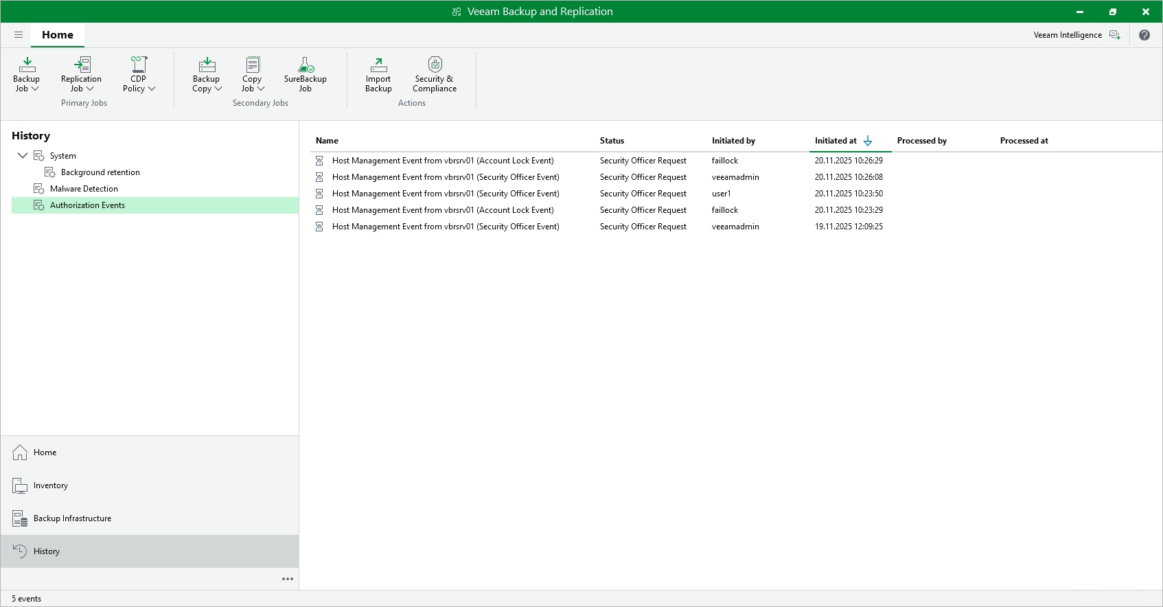 Local Veeam appliance users that have access to the Veeam Backup & Replication console as Backup Administrators, can view these events in the Veeam Backup & Replication web UI and desktop application.