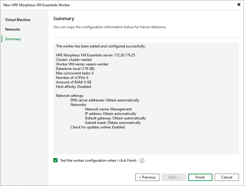 Step 4. Finish Working with Wizard At the Summary step of the wizard, review summary information and click Finish.TipIf you do not want to test the worker, clear the Test worker configuration when I click Finish check box and then click Finish.