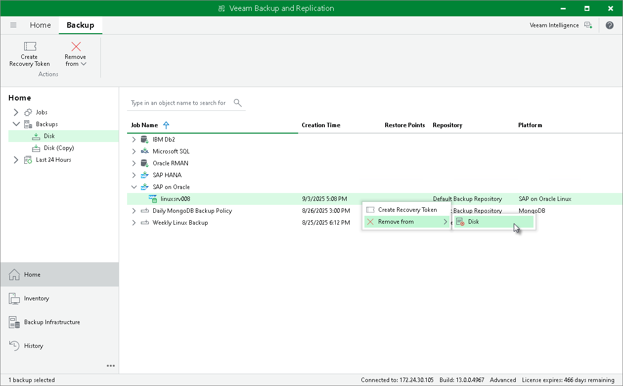 To remove a backup from a backup repository, do the following: