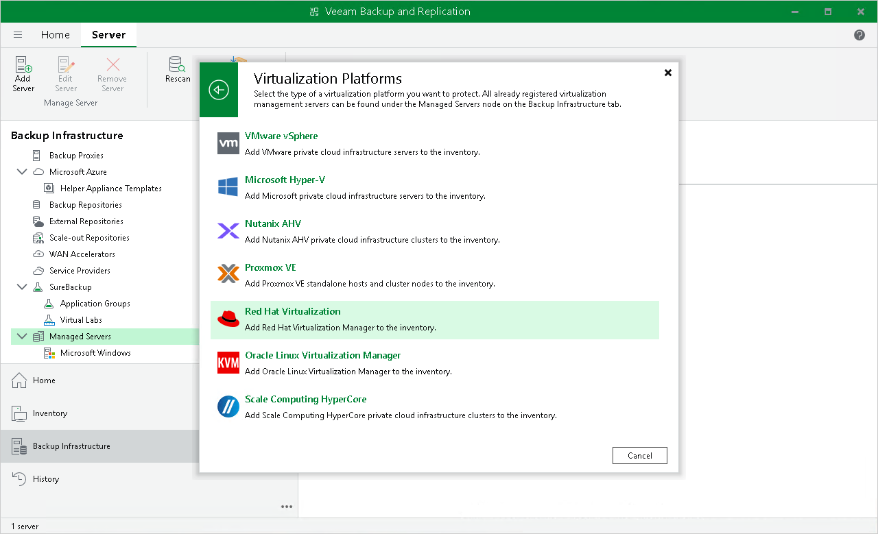 - In the Veeam Backup & Replication console, open the Backup Infrastructure view.