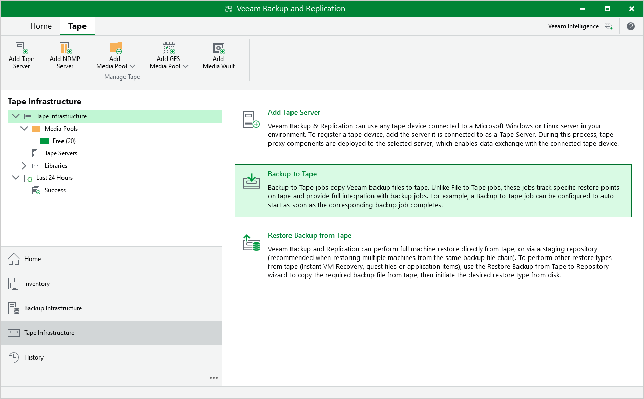 - Create a backup to tape job as described in section Creating Backup to Tape Jobs.