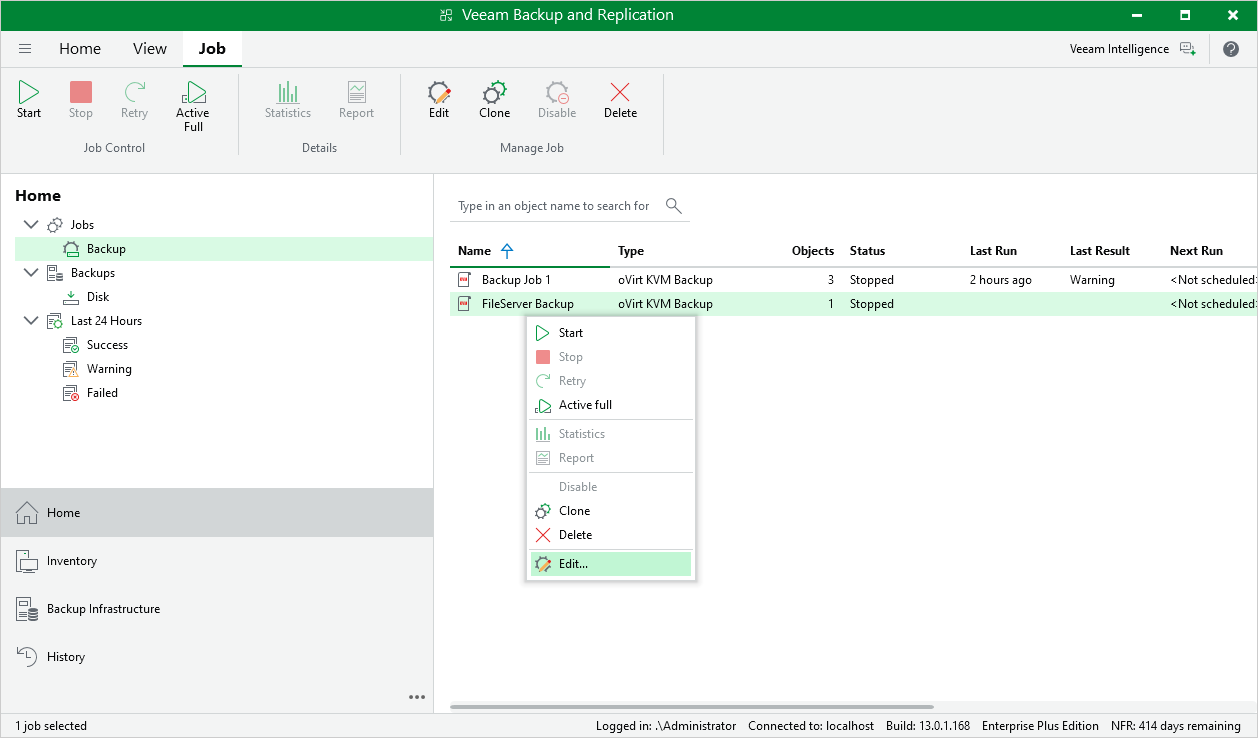 Alternatively, select the necessary job and click Edit on the ribbon.
