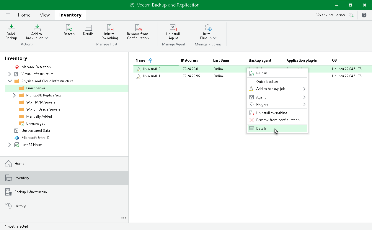 - In the working area, select the computer and click Details on the ribbon or right-click the computer and select Details.