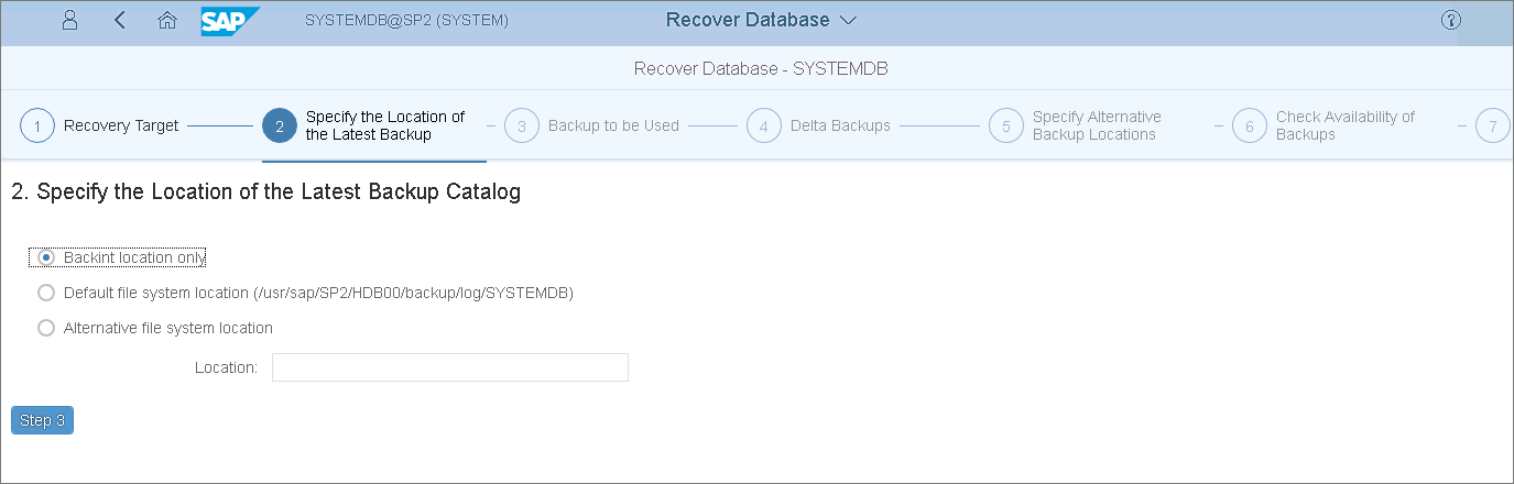 - Specify the location of the latest backup catalog and click Step 3.