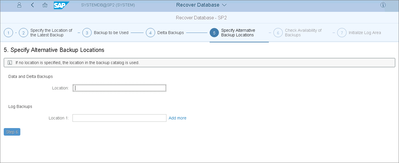 If you leave the fields empty, SAP HANA will use the locations specified in the backup catalog.