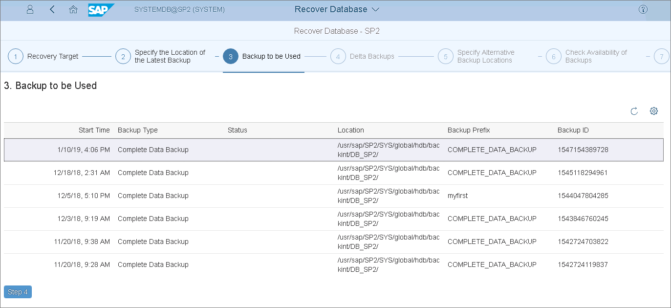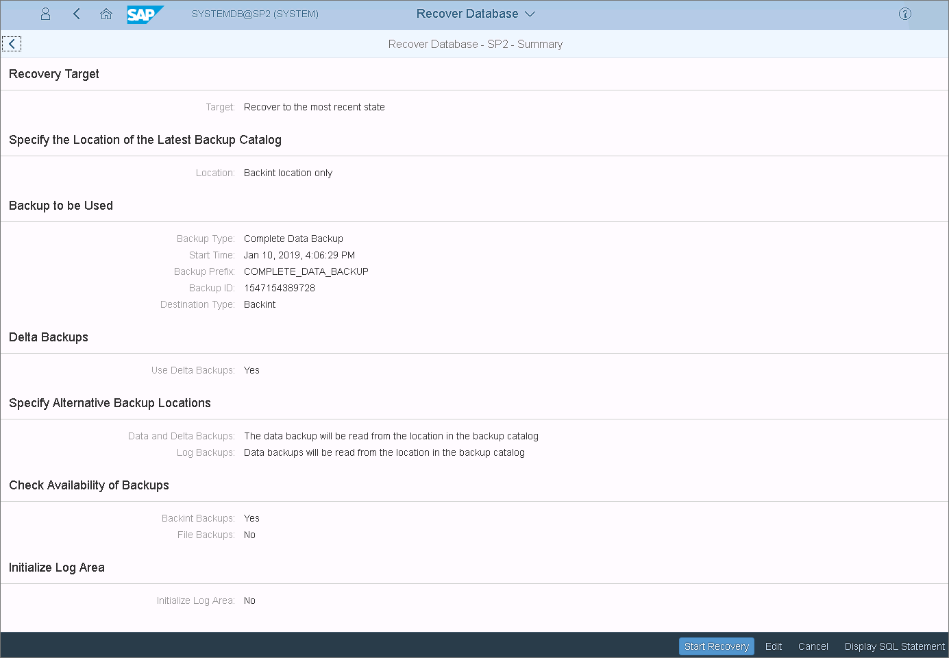 The example below is provided for demonstration purposes only. For details on the full restore functionality of SAP HANA tools, see this SAP article.