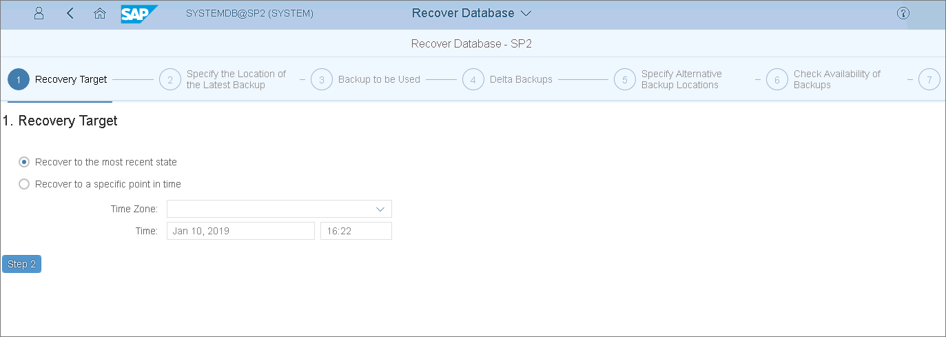 - At the Recovery Target step of the wizard, select the required restore point and click Step 2.
