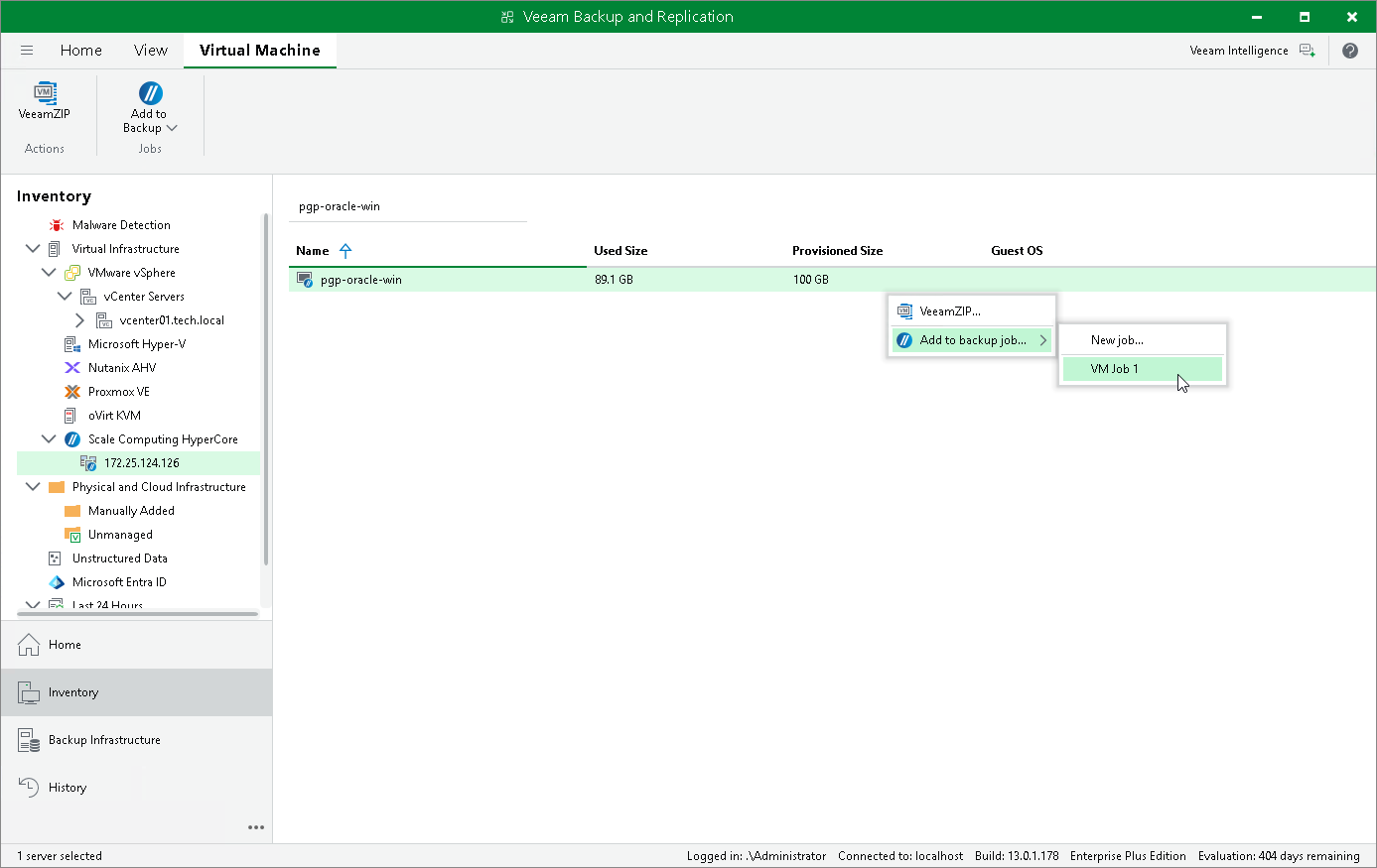 Alternatively, right-click the VM and select Add to backup job.