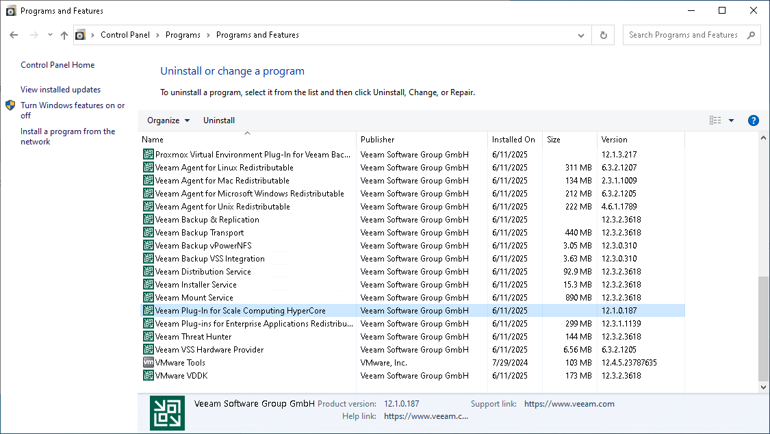 - In the program list, check the version of Veeam Plug-in for Scale Computing HyperCore.