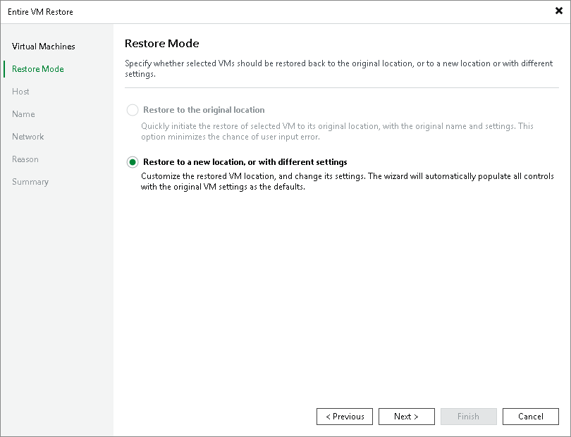 Step 3. Choose Restore Mode At the Restore Mode step of the wizard, choose whether you want to restore the selected VM to the original or to a custom location.