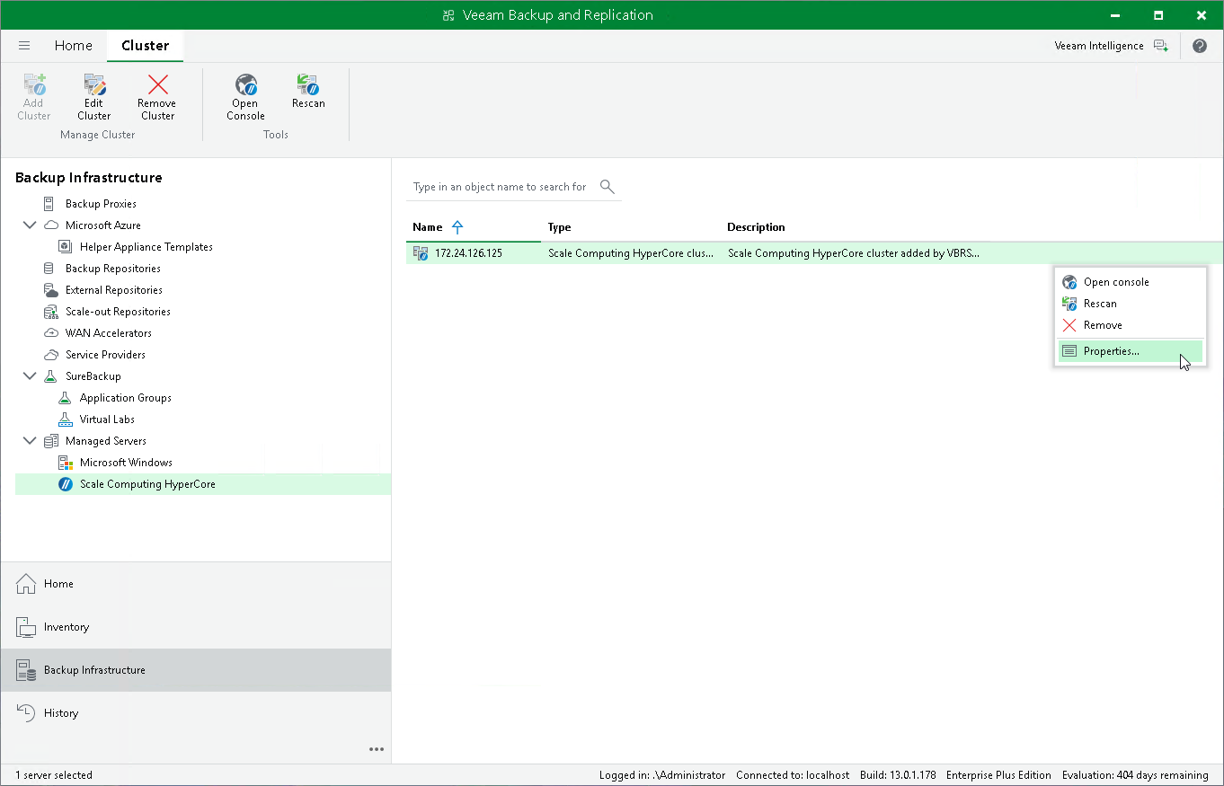 To edit properties of the Scale Computing HyperCore cluster added to the backup infrastructure, do the following:
