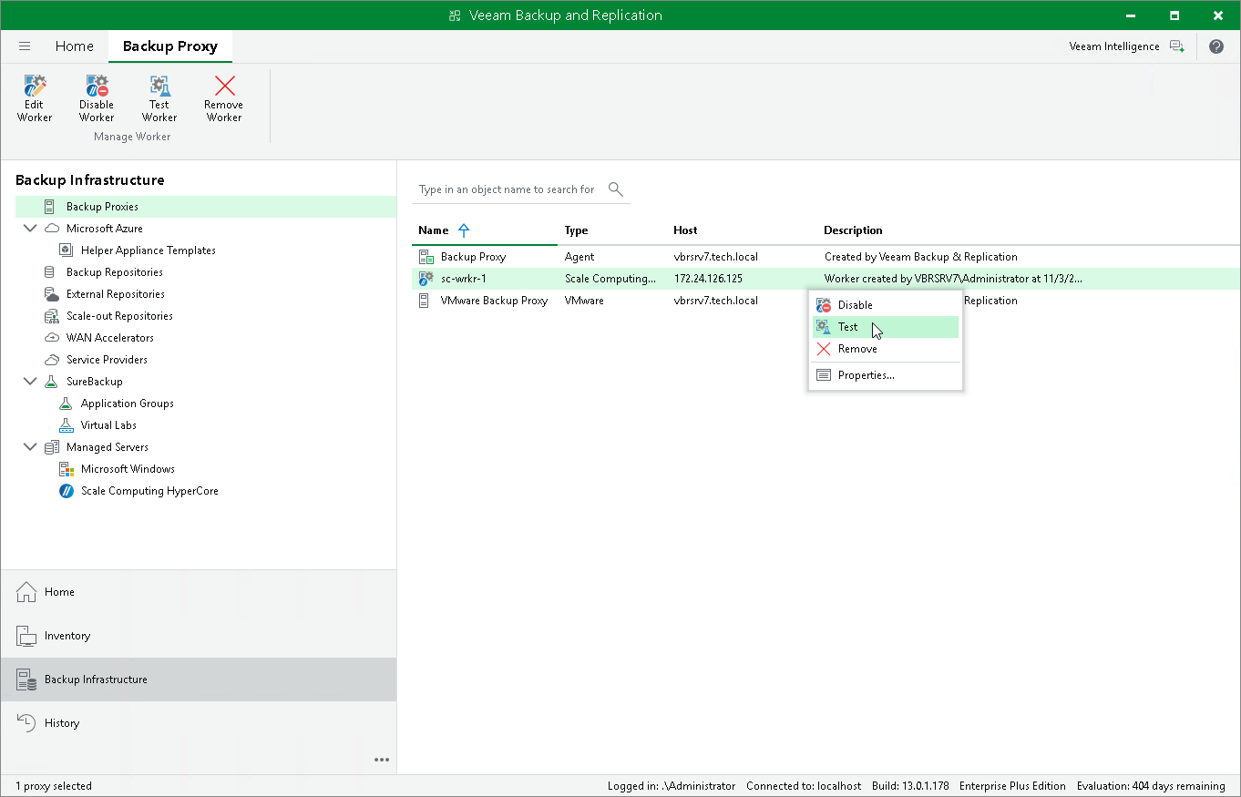Before using a dedicated worker for a backup or restore operation, Veeam Plug-in for Scale Computing HyperCore automatically tests its configuration — verifies that the worker service can start successfully, checks that the worker can connect to the backup server and to the host, and installs available updates.